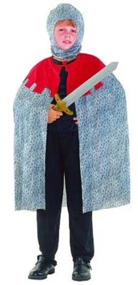 Boys Knights Cape with Red Shoulder Detail and Hood.