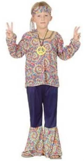 Boys Multi coloured Hippy costume with shirt, trousers, headband and medallion.
