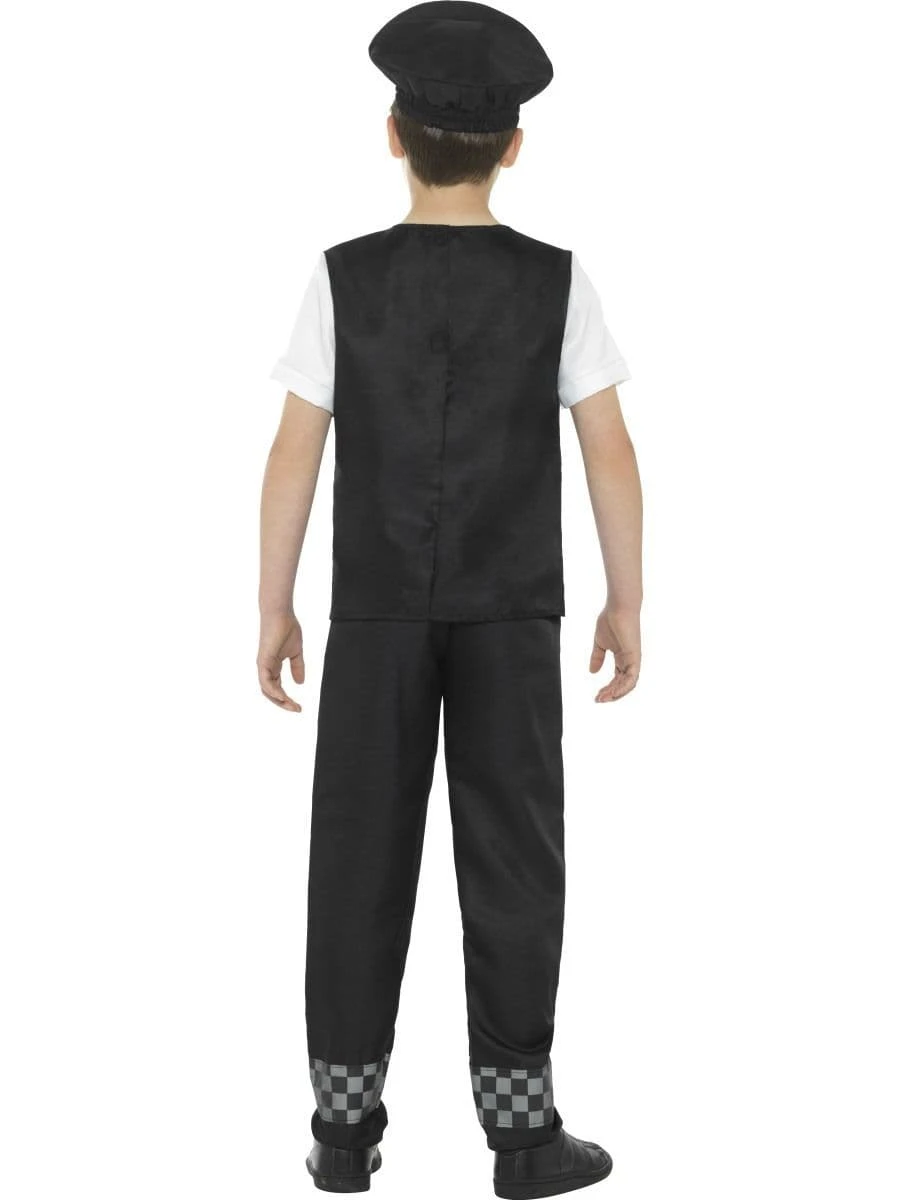 A modern British Police/ Cop costume. This great looking boys cop costume includes Top, Trousers & Hat.