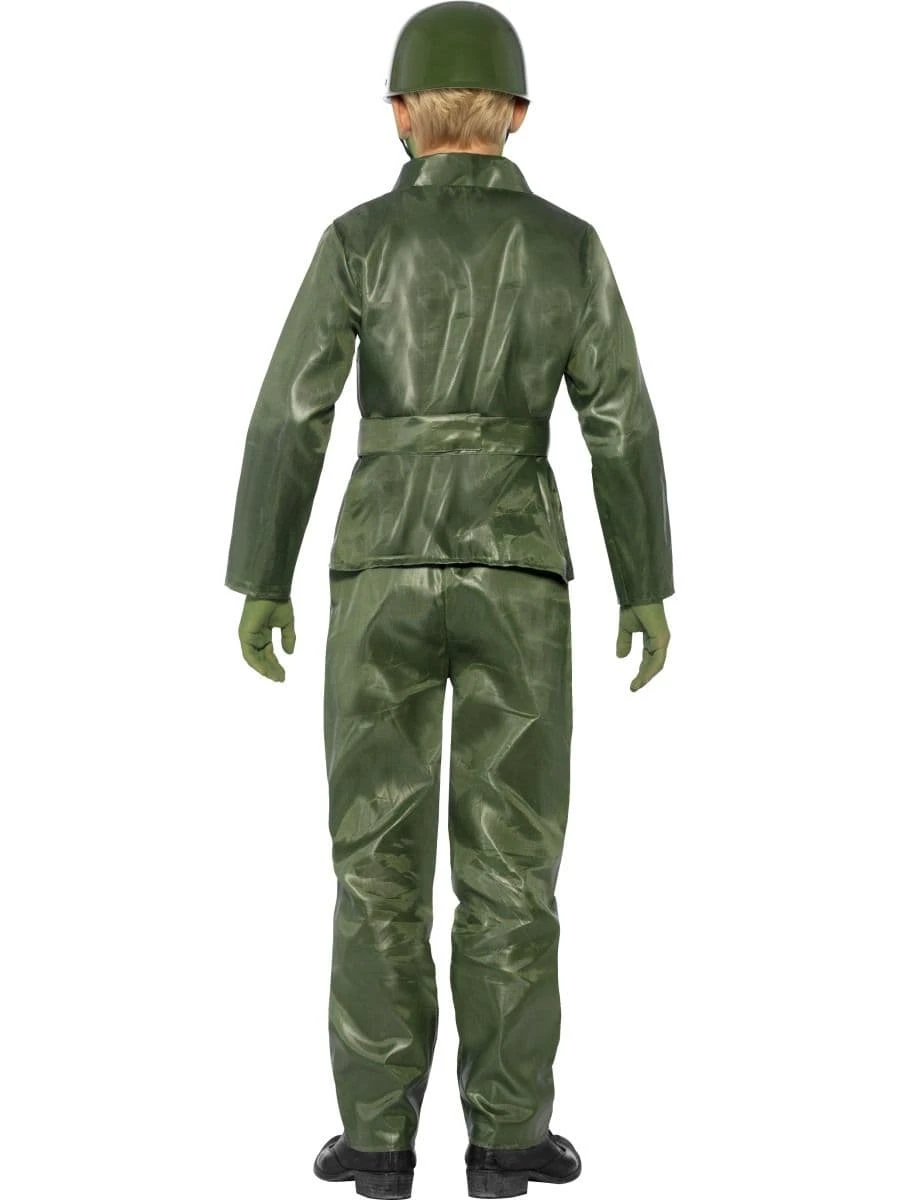 This unusual green plastic toy soldier costume has been a great hit. Great for and wartime themes and events but particulalry for Film themes (remember the soldiers in Toy Story). The costume comes complete with top, trousers, belt and helmet.