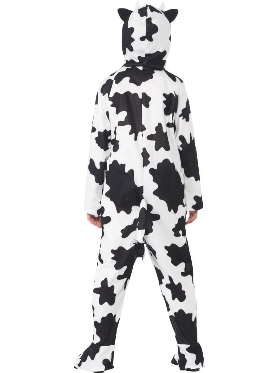 A simple but very effective children’s cow fancy dress costume. This great costume is a black and white cow patterned all-in-one costume with hood featuring ears and tail.