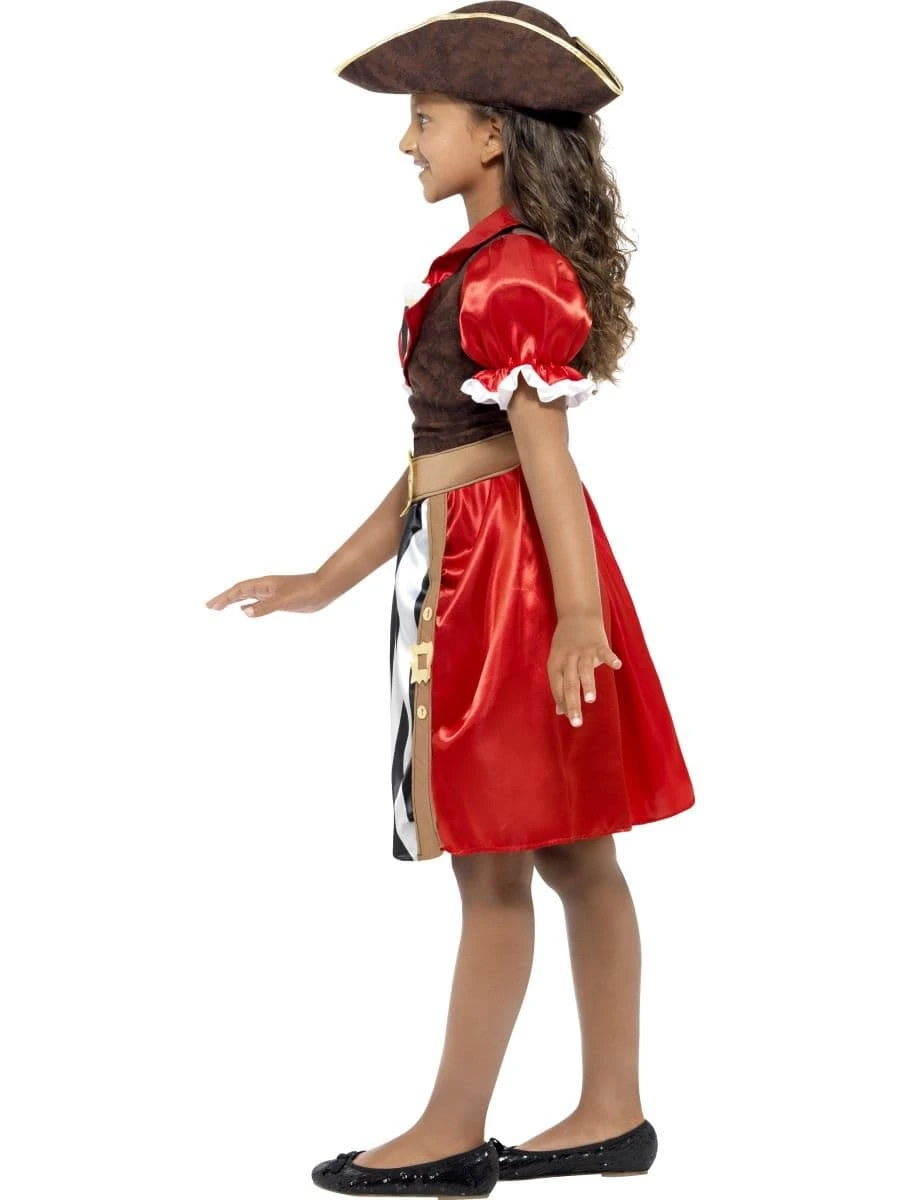 A really classy girl’s pirate costume for the girl who wants to really look the part. This fantastic costume includes a great looking pirate dress with mock waistcoat and belt plus pirate tricorn hat. Add a pirate’s cutlass for that cut-throat look.