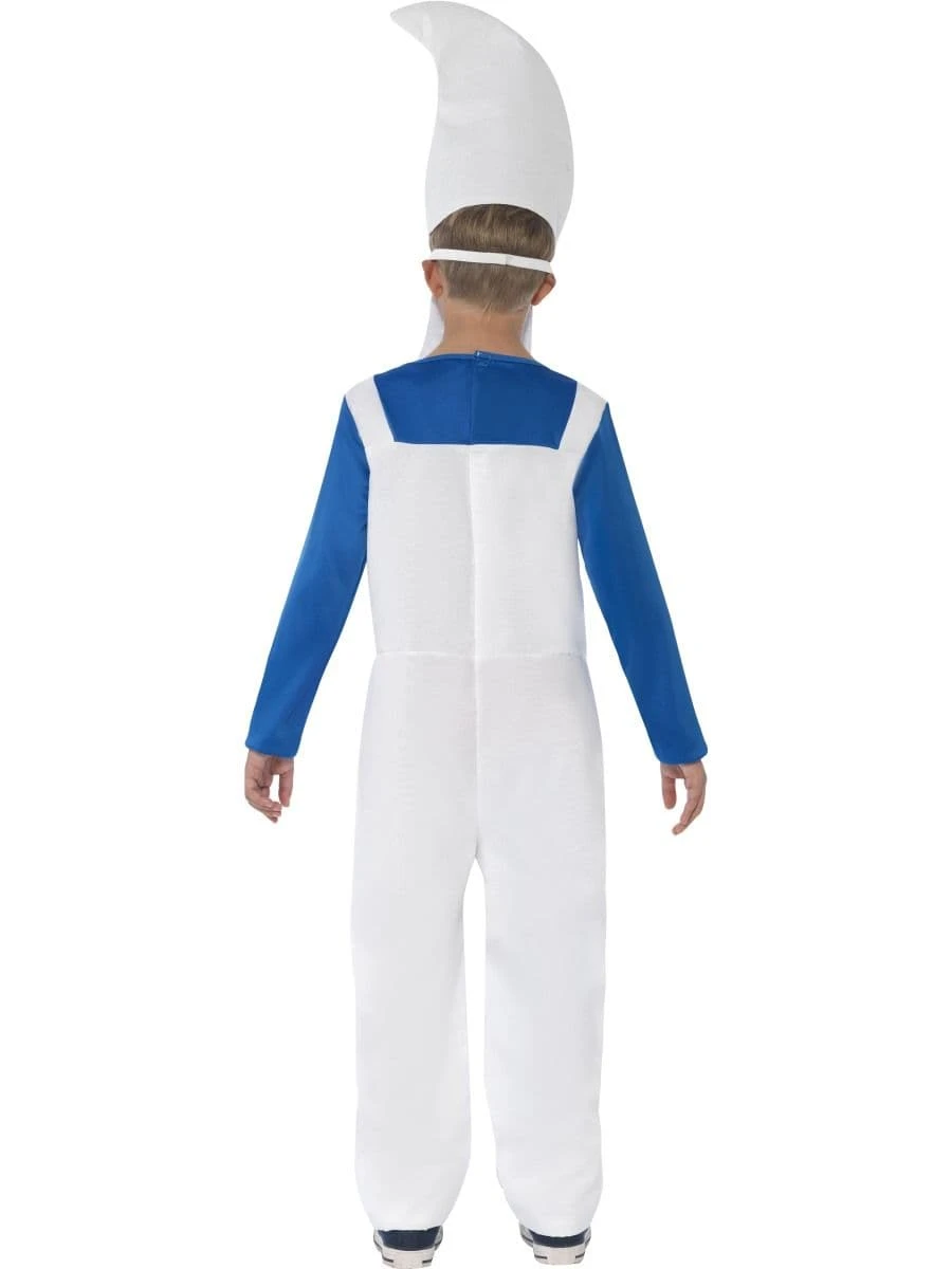 A simple yet effective gnome fancy dress costume. Suitable for boys and girls and great for garden parties and for Smurf or film themed events. This childrens’s gnome/ smurf costume is great for any child that enjoys silly dressing up or the Smurfs or Gnomeo and Juliette. The costume includes white dungarees with attached blue shirt plus hat and beard.