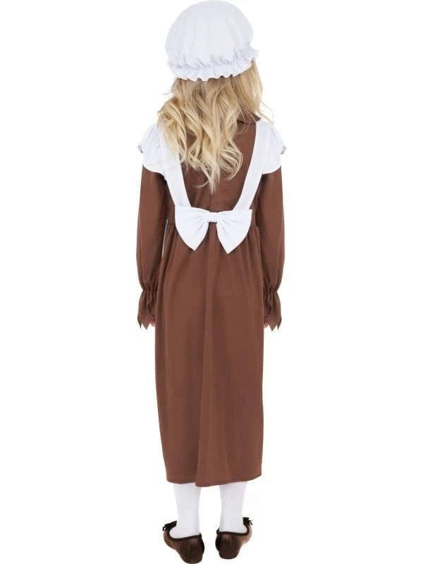 Poor Victorian Girls Costume, includes Long Brown and White Dress and White Mob Cap